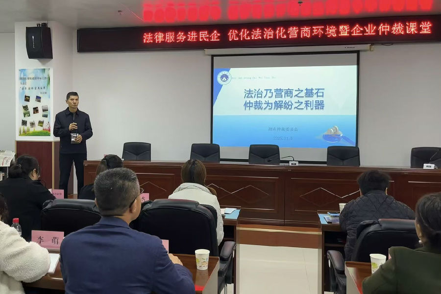 2025年11月5日,渭南仲裁委員會聯(lián)合臨渭區(qū)工商聯(lián)、臨渭區(qū)司法局共同舉辦“企業(yè)仲裁課堂”暨營商環(huán)境服務(wù)周活動。來自商貿(mào)、農(nóng)業(yè)、制造、物流等行業(yè)的20余家企業(yè)負(fù)責(zé)人參與。