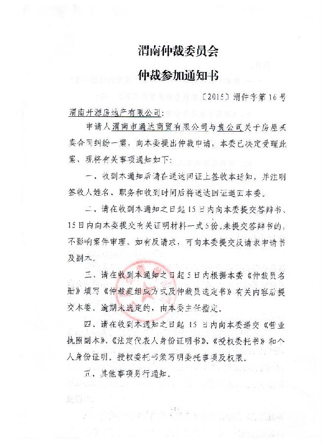 渭南市通達(dá)商貿(mào)有限公司與渭南開(kāi)源房地產(chǎn)有限公司一案公告