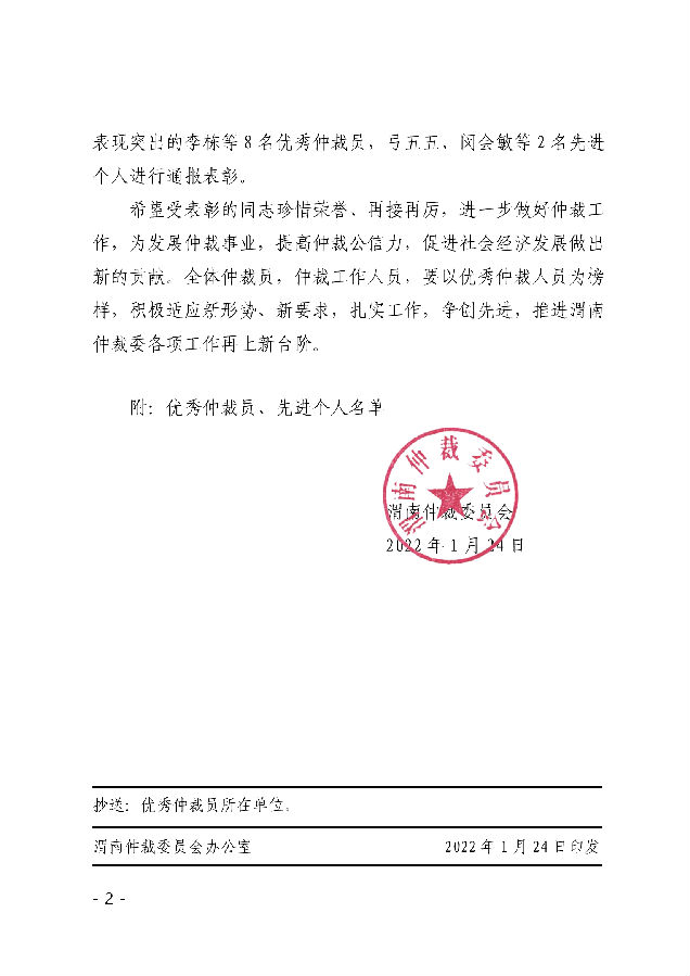 渭南仲裁委員會 關(guān)于表彰優(yōu)秀仲裁員、先進(jìn)個(gè)人的決定