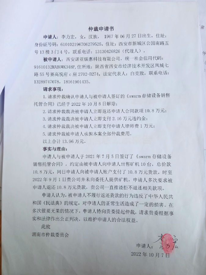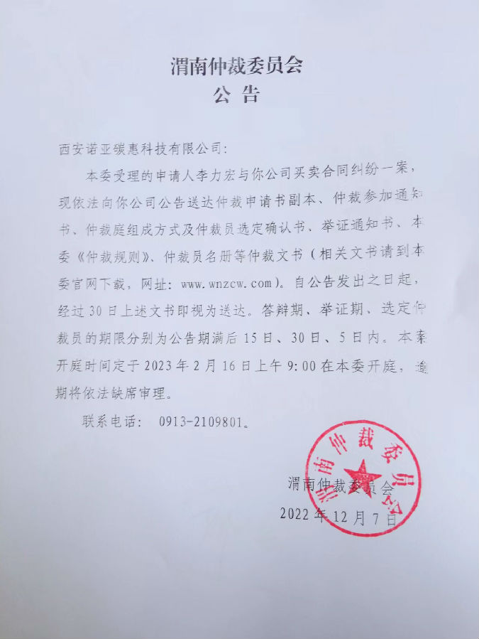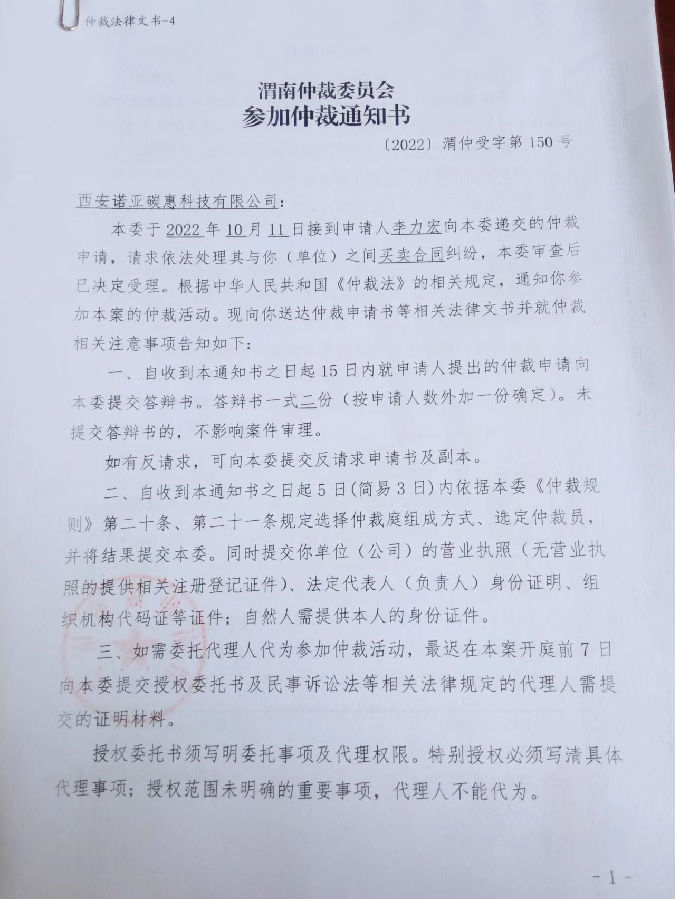 李力宏與西安諾亞碳惠科技有限公司一案公告